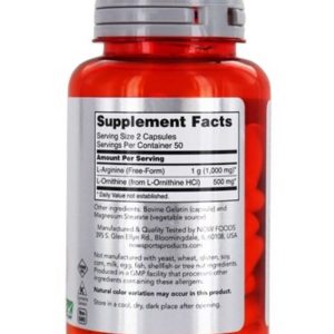 NOW Arginine & Ornithine, це комплекс з двох амінокислот – аргініну та орнітину, спрямований підвищити ефективність та результативність ваших тренувань.