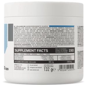 Інгредієнти: бета-аланін, оболонка капсули (наповнювач: гідроксипропілметилцелюлоза). Може містити молоко (включаючи лактозу), сою, арахіс, інші горіхи, насіння кунжуту, овес, яйця, молюсків, рибу. Спосіб застосування та дози: приймати 1 порцію (1 капсула) 3 рази на день під час їжі. Одноразовий прийом бета-аланіну в кількості понад 800 мг може викликати побічні ефекти у вигляді поколювання, оніміння. Рекомендується вживати разову порцію 800 мг з перервою не менше 3 годин між окремими порціями продукту.