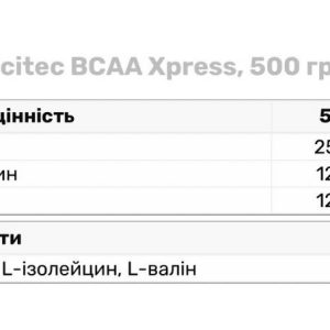 Близько третини всіх амінокислот в м’язах синтезуються за допомогою Bcaa, тому при додаткових навантаженнях необхідно приймати Bcaa Xpress в порошку від Scitec. БЦАА Експрес Скайтек активно бере участь в будівництві нових м’язових клітин, і це робить їх вагомою частиною правильного раціону.