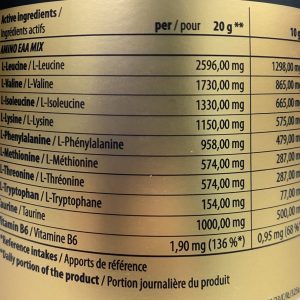 Trec AMINO EAA містить усі необхідні амінокислоти в оптимальній пропорції з додаванням таурину а також вітамін B6, що сприяє підтримці належного енергетичного обміну та зниження втоми.