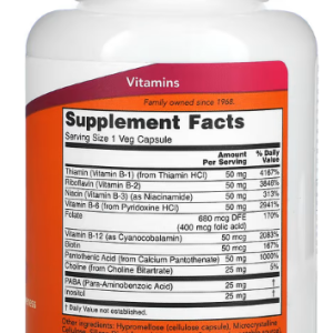 NOW B-50 Complex – B-50 Комплекс – це комплекс вітамінів B-групи. Вітаміни групи В – одна з найважливіших груп поживних речовин. Ці вітаміни тісно взаємопов’язані і поєднуються в одну групу, яку називають В-комплексом.