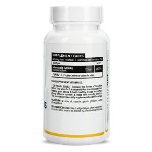 Progress Nutrition Vitamin D3 5000 IU – вітамінна добавка, що покращує засвоюваність організмом кальцію та фосфору та забезпечує здоров’я опорно-рухового апарату. Це можливо завдяки присутності у складі продукту вітаміну D3, який є гарною профілактикою остеопорозу. Запобігає руйнуванню хрящової тканини та захищає суглоби від руйнування. Підвищує якість тренувального процесу та полегшує регенерацію після пікових фізичних навантажень. Служить ефективною профілактикою проти онкологічних захворювань. Випускається у формі м’яких капсул. У банці 90 штук.