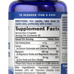 Основу Puritan’s Pride Chelated Calcium Magnesium Zinc складають 3 мінерали: кальцій, магній, цинк. Вони беруть участь в енергообмінних процесах, забезпечують потужну підтримку суглобового апарату, кісткових тканин та серцево-судинної системи. У складі мінерального комплексу Calcium Zinc Magnesium кальцій, магній та цинк присутні у доступній формі, тому практично повністю засвоюються клітинами організму.
