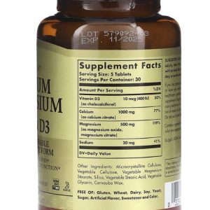 Кальцій є будівельним матеріалом, який допомагає підтримувати міцність і здоров’я кісток і зубів. Він також підтримує здоров’я кістково-м’язової та нервової систем. Магній допомагає регулювати транспортування кальцію та стимулює секрецію кальцитоніну — гормону, який сприяє надходженню кальцію в кістки. Вітамін D необхідний для сприяння засвоєнню кальцію, що допомагає підтримувати здоров’я кісток і зубів. Вітамін D також підтримує здоров’я імунної системи. Ця формула містить вітамін D3 для щоденної добавки.