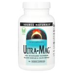 Source Naturals Ultra-Mag Veg Caps – рослинні капсули з біодоступним магнієм з п’яти різних джерел. Капсульована форма гарантує точне дозування активних речовин та робить прийом добавки більш зручним. Магній – мінерал, який зазвичай надходить в організм з їжею. Міститься в багатьох харчових продуктах: молокопродукти, риба, м’ясо, морепродукти, яблука, абрикоси, авокадо, банани та патока. Однак через нездоровий спосіб життя та негетивний вплив факторів навколишнього середовища в організмі може виникнути дефіцит магнію. Результати досліджень демонструють, що 57-70% людей відчувають нестачу даного мінералу. Тому спеціалісти рекомендують приймати спеціальні добавки з ним. Особливості та переваги Source Naturals Ultra-Mag Veg Caps: базується на складній формулі високобіологічно активних форм магнію – цитрату, тауринату, малату, гліцинату і сукцинату, що дозволяє забезпечити всі переваги магнію;
