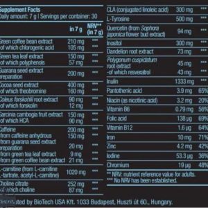 Приймати Black Burn від BioTech обов’язково потрібно спортсменам, які підтримують форму, тим, хто перебуває в процесі здорового схуднення, а також бодібілдерам та пауерліфтерам на стадії сушіння.До порції дієтичної добавки-жироспалювача вагою 7 г входить: