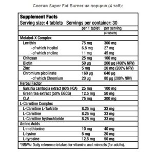 Super Fat Burner обладает уникальным составом, в который входят такие вещества как инозитол, холин и т.п. Сумма таких компонентов оказывает действительно заметный эффект. В итоге аэробные тренировки приносят свои плоды уже с первой недели.