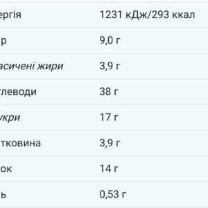 Інгредієнти для смаку «подвійний шоколад» : пшеничне борошно ( пшеничне борошно, карбонат кальцію, залізо, ніацин, тіамін), коричневий цукор, вівсяний сироп, зволожувач (рослинний гліцерин), гідролізований пшеничний протеїн, стружка темного шоколаду (9%) (какао терте, цукор, емульгатор ( Соєвий лецитин), ароматизатор), какао-порошок, гороховий білок, рослинні олії (оливкова, кокосова), соєвий білок, стабілізатор (камедь акації), вода, розпушувач (карбонати натрію), ароматизатор, сіль. Чіпси з темного шоколаду: мінімум 49% сухого какао.