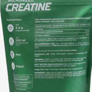 Progress Nutrition Creatine Monohydrate — моногідрат креатину у формі розчинного порошку. Прийом добавки збільшує запаси власного АТФ, що дозволяє тренуватися довше і ефективніше.