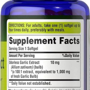 Таким образом, Puritan’s Pride Odorless Garlic 1000 mg это идеальный способ использовать полезные для здоровья эффекты чеснока. Не беспокойтесь, его могут использовать люди, которым не нравится вкус или острый запах чеснока. Добавка отлично подойдет для гриппа и холодного сезона. Он также может быть использован в качестве профилактики сердечно-сосудистых заболеваний.