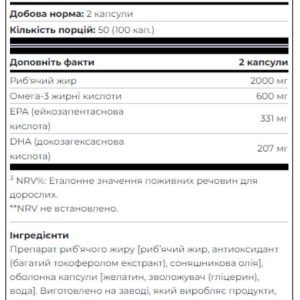 Склад 1 порції (2 капсули) Scitec Nutrition — Omega 3: