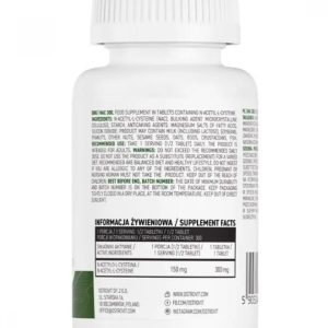 OstroVit NAC — це харчова добавка, що містить тільки чистий N-ацетил-L-цистеїн, який є похідним L-цистеїну, сірчаної амінокислоти. Основна функція N-ацетил-L-цистеїну – підтримувати організм у виробництві глутатіону, який відіграє ключову роль у клітинній детоксикації шляхом нейтралізації шкідливих вільних радикалів. Належний рівень глутатіону в організмі безпосередньо впливає на поліпшення функції печінки і збільшення її антиоксидантної здатності. Крім впливу на травну систему, NAC також підтримує роботу інших органів і систем. Він стимулює роботу імунної системи, забезпечує більш швидку регенерацію м’язів, а також має нейропротекторну дію. Препарати з ацетилцистеїном також зареєстровані як муколітичні препарати, тобто вони полегшують відхаркування і зменшують кількість слизу в дихальних шляхах. Таким чином, NAC покращує функцію респіраторного епітелію, не порушуючи природного кашльового рефлексу. NAC – це універсальна добавка, яка надає комплексну оздоровчу дію. Найбільш корисна для людей, які піддають свою печінку частому контакту з токсичними речовинами. У цю групу входять в основному люди, які зловживають алкоголем і нікотином, а також вживають велику кількість фармакологічних засобів. Добавки NAC часто рекомендуються спортсменам, після циклу з анаболічно-андрогенними стероїдами, які роблять важке навантаження на печінку і можуть погіршувати її функції. Підтримуйте здоров’я імунної системи, функцію печінки і захищайтеся від окисного стресу за допомогою N-ацетил-L-цистеїну. Переваги: