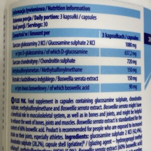 6PAK Nutrition Flex Pak – високоякісна харчова добавка для суглобів. У його складі ви знайдете тільки перевірені та відомі активні речовини, вплив яких на стан опорно-рухового апарату є незаперечним. Великою перевагою продукту є його капсульована форма.