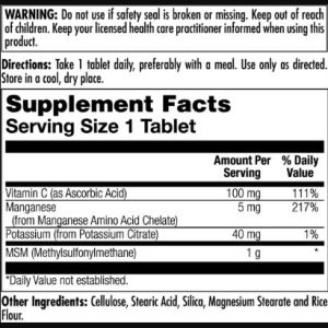 • Висока концентрація MSM: 1000 мг на таблетку для інтенсивної підтримки.