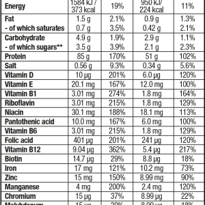 В каждой порции протеина — 85% белка, что позволяет всего в несколько приемов на день, практически полностью перекрыть дневную потребность в белке.