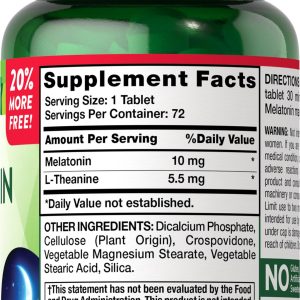 Розроблена з урахуванням ваших потреб формула максимального впливу містить корисну амінокислоту L-теанін для додаткової підтримки, посилення ефекту та відновлення нервової системи від стресу. Швидкодіючі таблетки містять 10 мг мелатоніну плюс 5,5 мг L-теаніну на порцію, що робить цей засіб для нічного сну незамінним помічником, особливо в ті ночі, коли вам важко заснути.