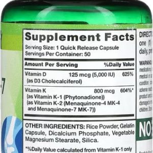 Вітамін К сприяє нормальному згортанню крові і підтримує здоров’я кісток. Nature’s Truth Vitamin K-2 – це високоефективна добавка, яка містить 800 мкг біодоступність форми вітаміну К, менахинона, в кожній швидко вивільняється безглютенової гелевою капсулі. Менахінон витягується з унікального сорту сої, відомого в Японії як «натто», і забезпечує чудову біодоступність і засвоєння цього вітаміну.