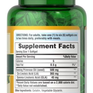 Puritan’s Pride Evening Primrose Oil 500 mg with GLA- концентрація примули вечірньої (енотери).